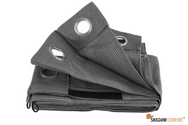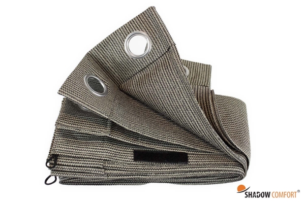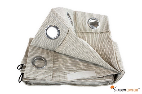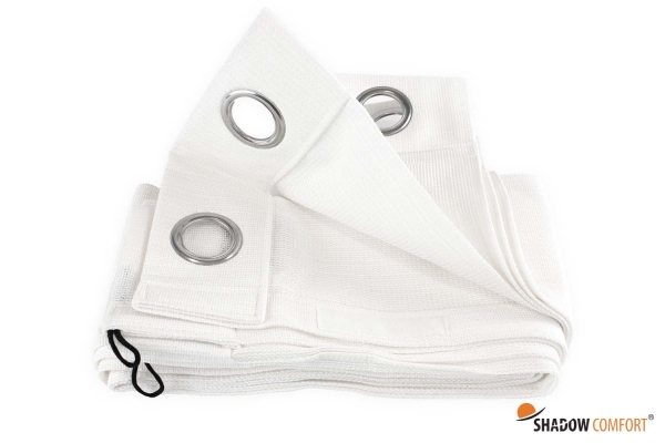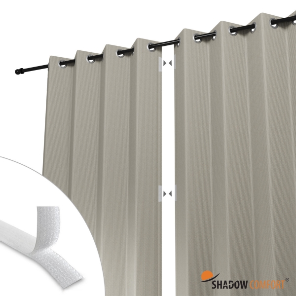 Shadow Comfort® heeft buitengordijnen ontwikkeld waarmee je gedurende het hele jaar van het buitenleven kunt genieten. De Shadow Comfort buitengordijnen zijn eenvoudig, maar zeer efficiënt en van een hoogwaardige kwaliteit HDPE doek. Hierdoor kun je in de zomer een beschut en verkoelend plekje creëren of de felle zon buiten houden. De gordijnen zijn voorzien van RVS gordijnringen aan de bovenzijde, in het midden kun je ze middels klittenband met elkaar verbinden en aan de zijkanten zijn de gordijnen voorzien van zeilogen zodat je ze hier ook kunt vastzetten. Ook zijn de gordijnen aan de onderzijde voorzien van extra elastische lussen om het gordijn nog extra vast te kunnen zetten.