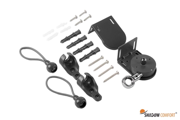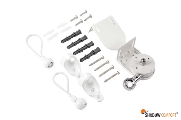 De buiten rolgordijnen zijn aan de onderzijde voorzien van een D-ring aan beide kanten van de onderbuis, waarmee je het rolgordijn eenvoudig met de bijgeleverde accessoires aan de vloer, paal of muur kunt vastzetten. De outdoor rolgordijnen zijn handmatig op en af te rollen met de meegeleverde draaistok.