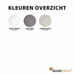 Shadow Comfort® rolgordijnen voor buiten zijn gemaakt van hoogwaardig UV gestabiliseerd waterdoorlatend HDPE materiaal. Hierdoor kunnen onze rolgordijnen het hele jaar door buiten blijven hangen en zijn perfect voor zonwering bij jouw terras, pergola, overkapping of ramen.